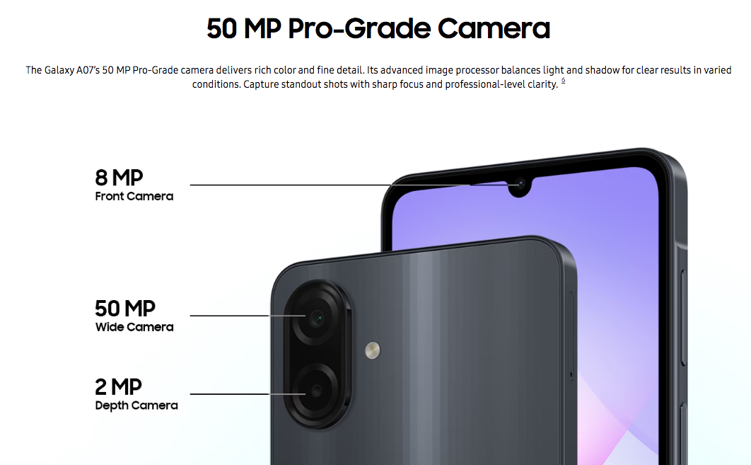 50MP main camera (f/1.8) with autofocus, supports 1080p video recording